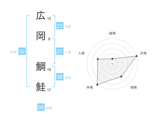 広岡 鯛鮭さんの総格は59画の1点!