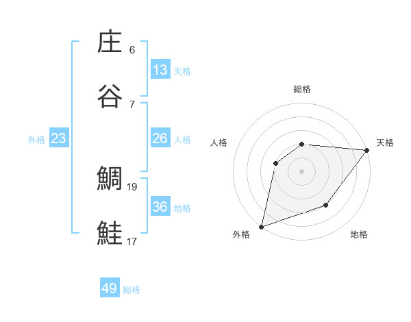 庄谷 鯛鮭さんを姓名の画数から五運を鑑定
