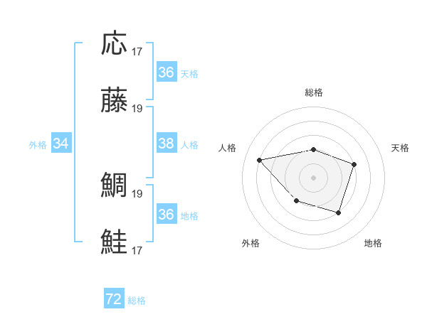 応藤 鯛鮭さんの総格は72画の2点!