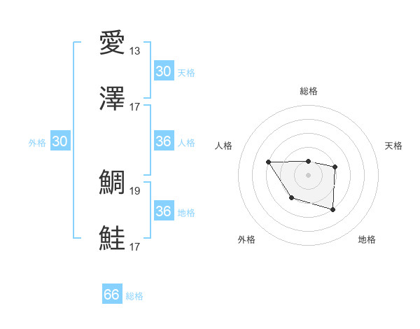 愛澤 鯛鮭さんの総格は66画の1点!