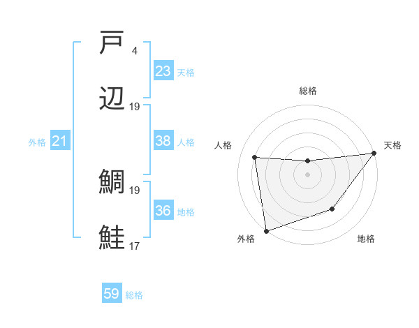 戸辺 鯛鮭さんの総格は59画の1点!