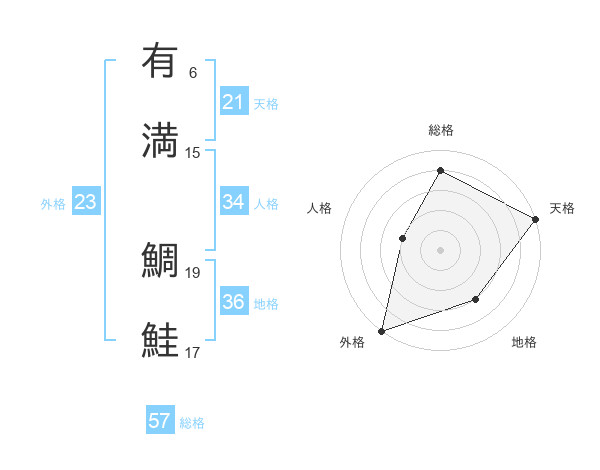 有満 鯛鮭さんの総格は57画の4点!