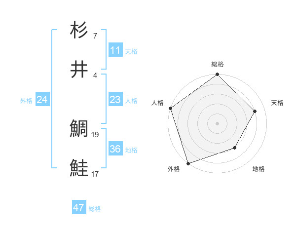 杉井 鯛鮭さんを姓名の画数から五運を鑑定