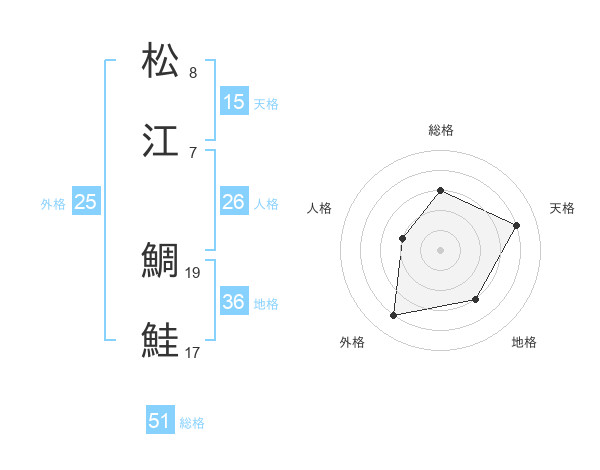 松江 鯛鮭さんを姓名の画数から五運を鑑定