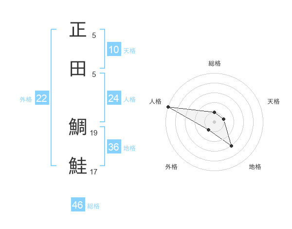 正田 鯛鮭さんの総格は46画の1点!