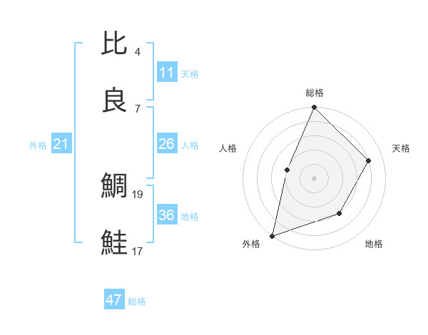 比良 鯛鮭さんを姓名の画数から五運を鑑定
