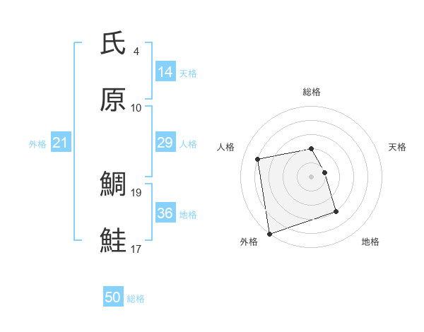 氏原 鯛鮭さんの総格は50画の2点!
