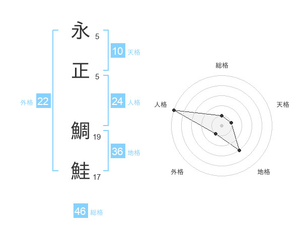 永正 鯛鮭さんを姓名の画数から五運を鑑定