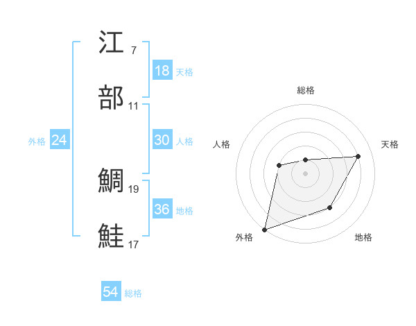 江部 鯛鮭さんの総格は54画の1点!