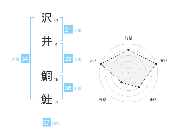 沢井 鯛鮭さんを姓名の画数から五運を鑑定