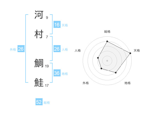 河村 鯛鮭さんを姓名の画数から五運を鑑定