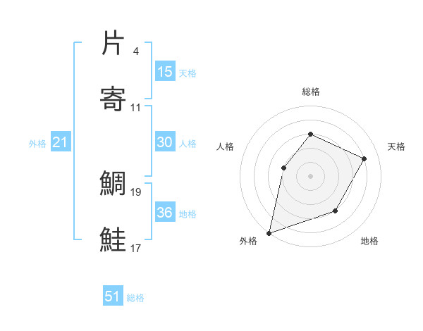 片寄 鯛鮭さんの総格は51画の3点!