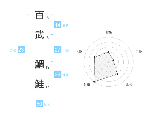 百武 鯛鮭さんの総格は50画の2点!