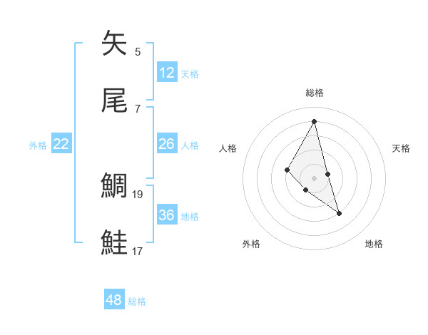 矢尾 鯛鮭さんを姓名の画数から五運を鑑定
