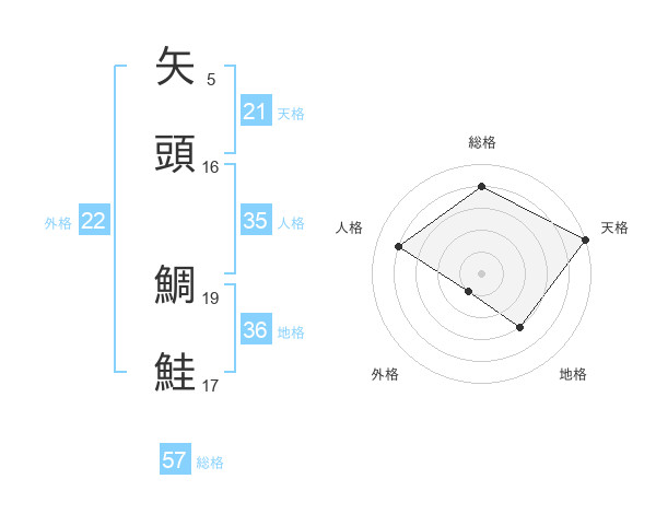 矢頭 鯛鮭さんの総格は57画の4点!