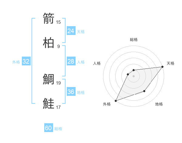 箭柏 鯛鮭さんの総格は60画の1点!