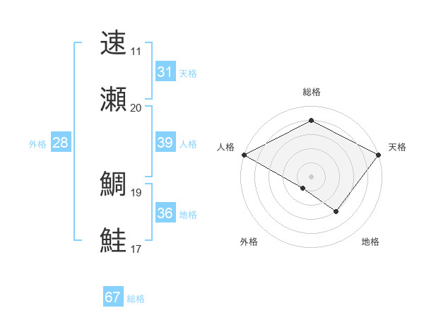 速瀬 鯛鮭さんの総格は67画の4点!
