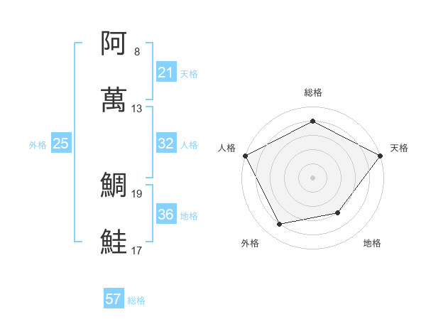 阿萬 鯛鮭さんを姓名の画数から五運を鑑定