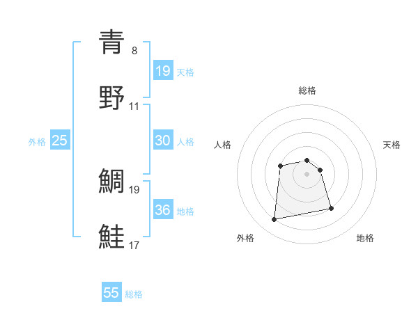 青野 鯛鮭さんを姓名の画数から五運を鑑定