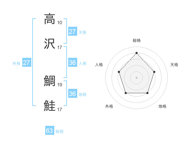 高沢 鯛鮭さんの総格は63画の4点!