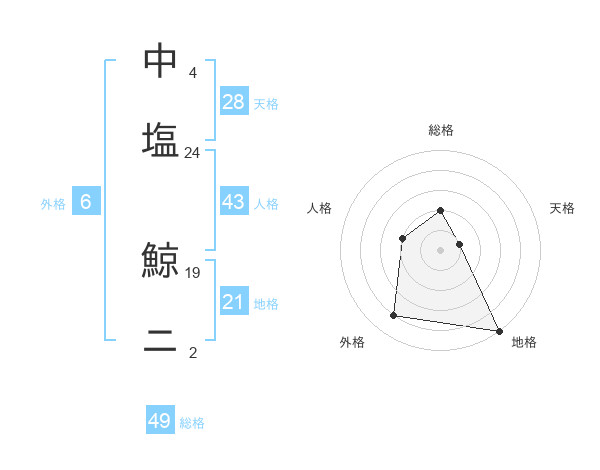 中塩 鯨ニさんを姓名の画数から五運を鑑定