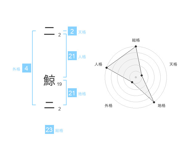 二 鯨ニさんの地格は21画の5点!