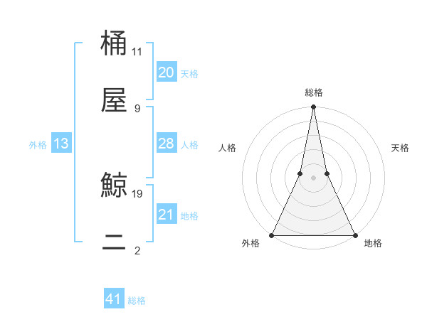 桶屋 鯨ニさんの総格は41画の5点!