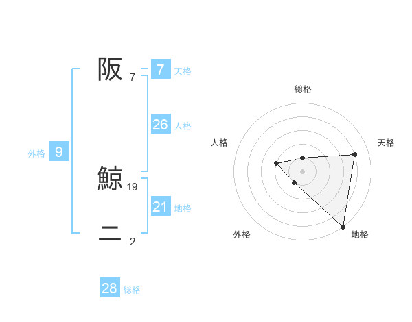 阪 鯨ニさんの総格は28画の1点!