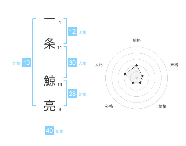 一条 鯨亮さんの天格は12画の1点!