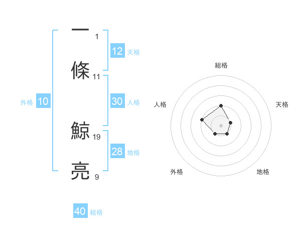 一條 鯨亮さんの外格は10画の1点!
