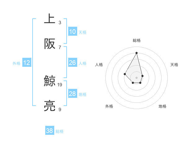 上阪 鯨亮さんを姓名の画数から五運を鑑定