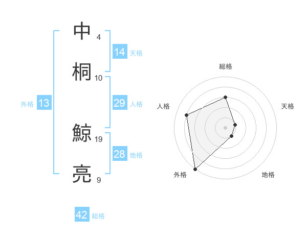 中桐 鯨亮さんを姓名の画数から五運を鑑定