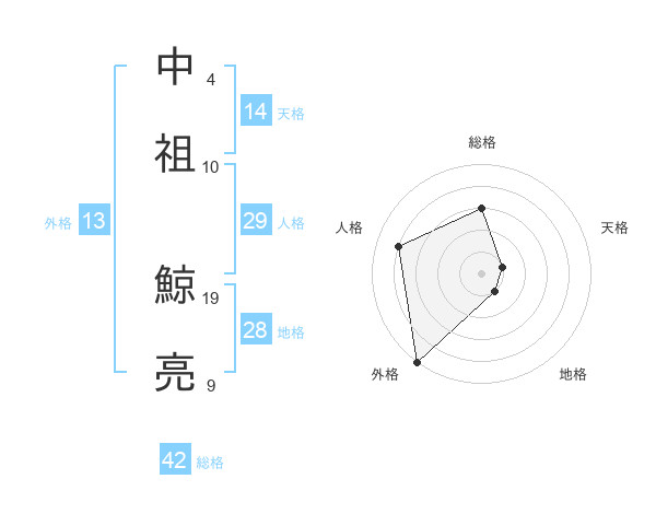 中祖 鯨亮さんの外格は13画の5点!