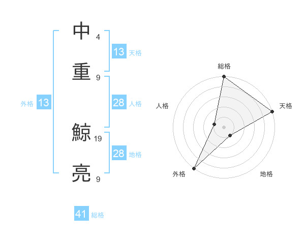 中重 鯨亮さんの外格は13画の5点!