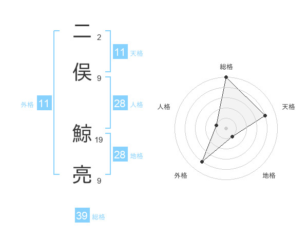 二俣 鯨亮さんの外格は11画の4点!