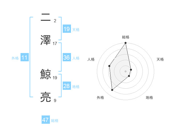 二澤 鯨亮さんの総格は47画の5点!