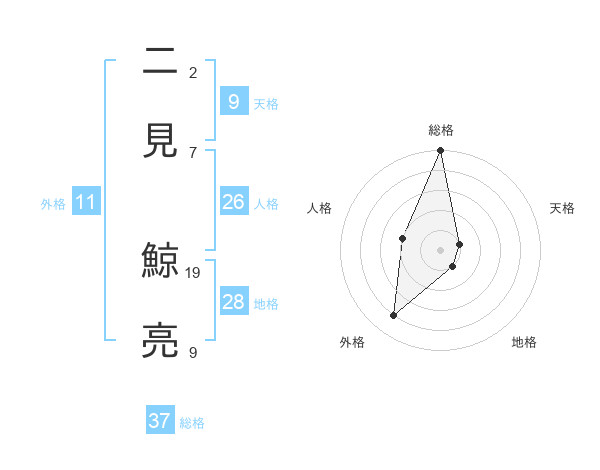 二見 鯨亮さんを姓名の画数から五運を鑑定
