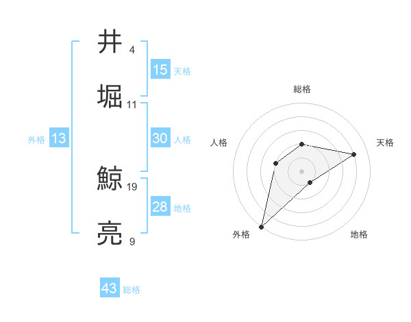 井堀 鯨亮さんの外格は13画の5点!