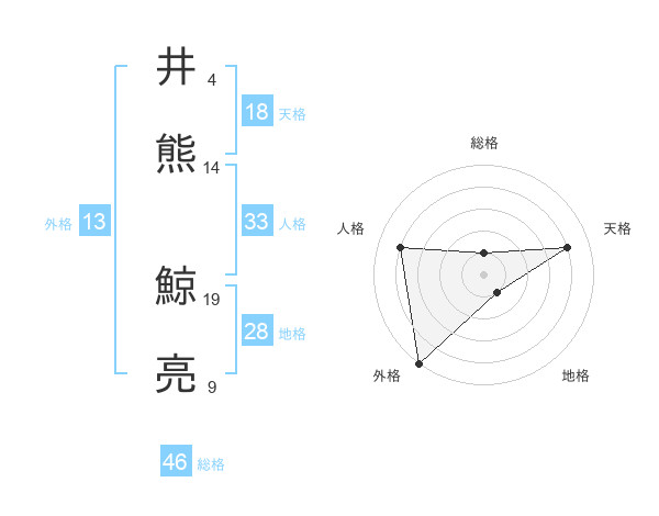 井熊 鯨亮さんの外格は13画の5点!