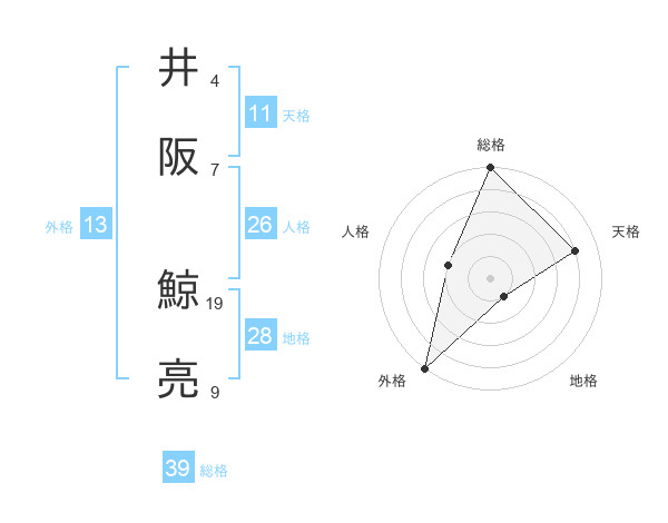 井阪 鯨亮さんの総格は39画の5点!