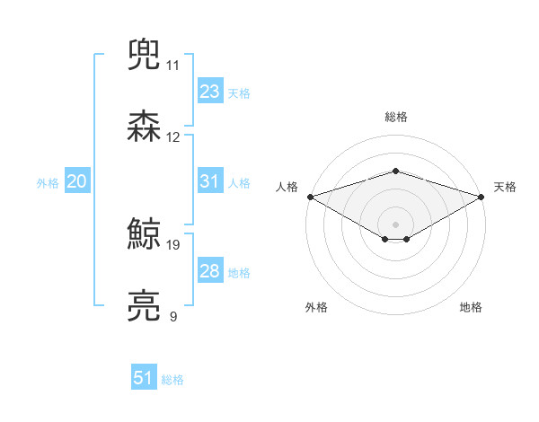 兜森 鯨亮さんを姓名の画数から五運を鑑定