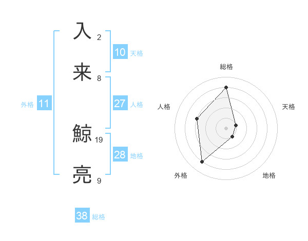入来 鯨亮さんの総格は38画の4点!