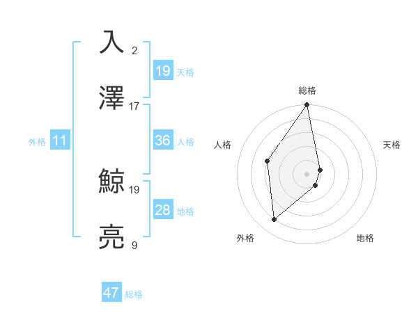 入澤 鯨亮さんの総格は47画の5点!