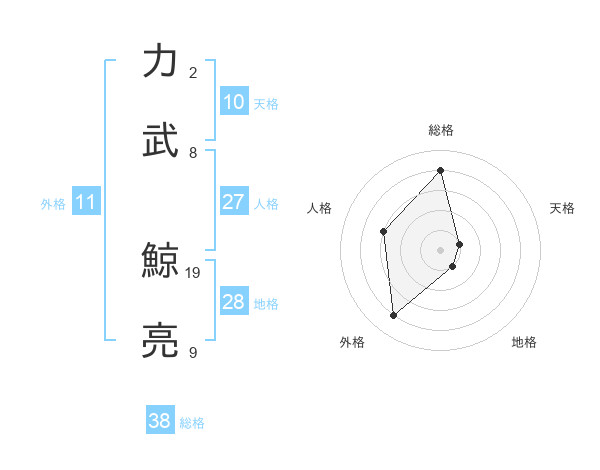 力武 鯨亮さんを姓名の画数から五運を鑑定
