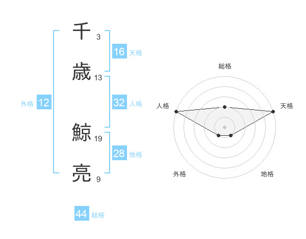 千歳 鯨亮さんの総格は44画の2点!