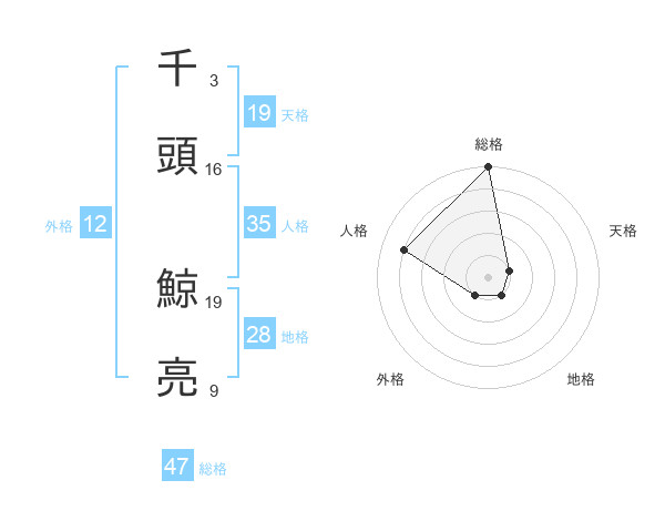 千頭 鯨亮さんの総格は47画の5点!