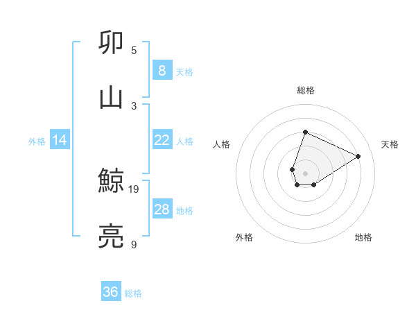 卯山 鯨亮さんを姓名の画数から五運を鑑定