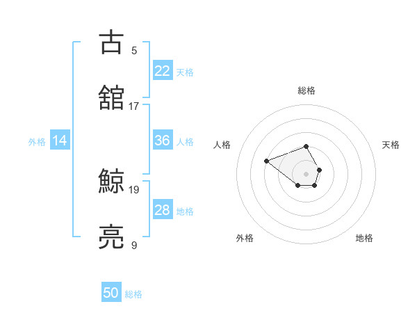古舘 鯨亮さんの総格は50画の2点!