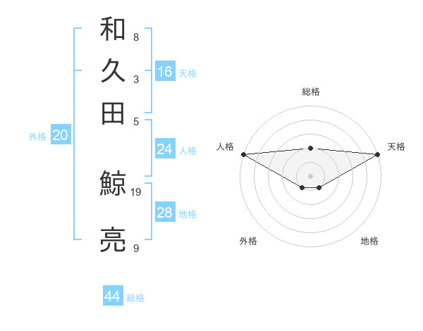 和久田 鯨亮さんの総格は44画の2点!