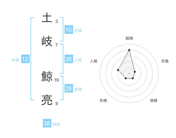 土岐 鯨亮さんの総格は38画の4点!
